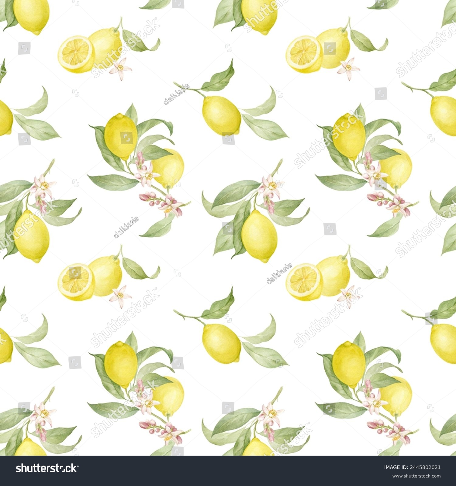 Pattern of lemon branch tree with flowers and leaves. Seamless Stock ...