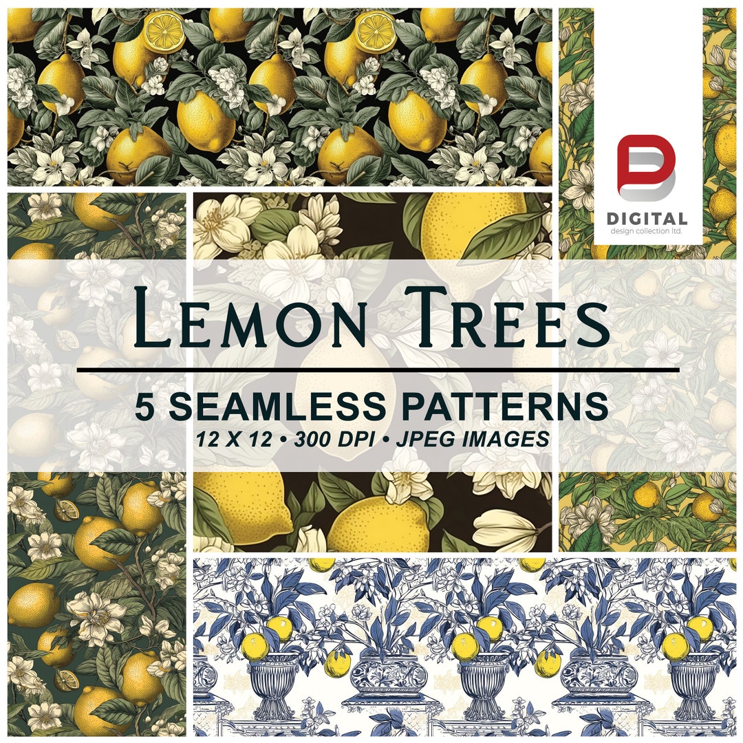 18 Lemon Tree Digital Patterns, Fruit Inspired Images, Cute Lemon ...