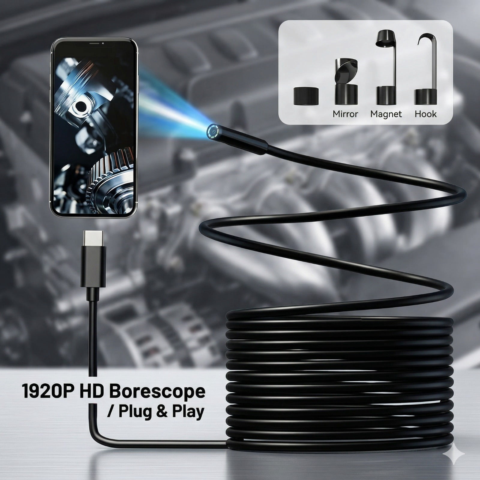 Endoscope Camera with Light,1920P HD Borescope Tools with 8 Adjustable ...