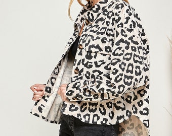 Leopard Print Shacket Jacket Button Front Outerwear - Etsy