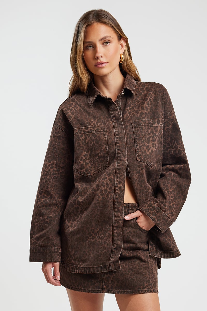 Buy Threadbare Animal Leopard Print Denim 100% Cotton Shacket from the ...