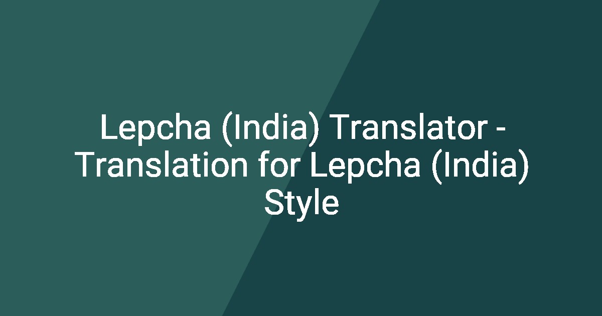 Lepcha (India) Translator - Translation for Lepcha (India) Style