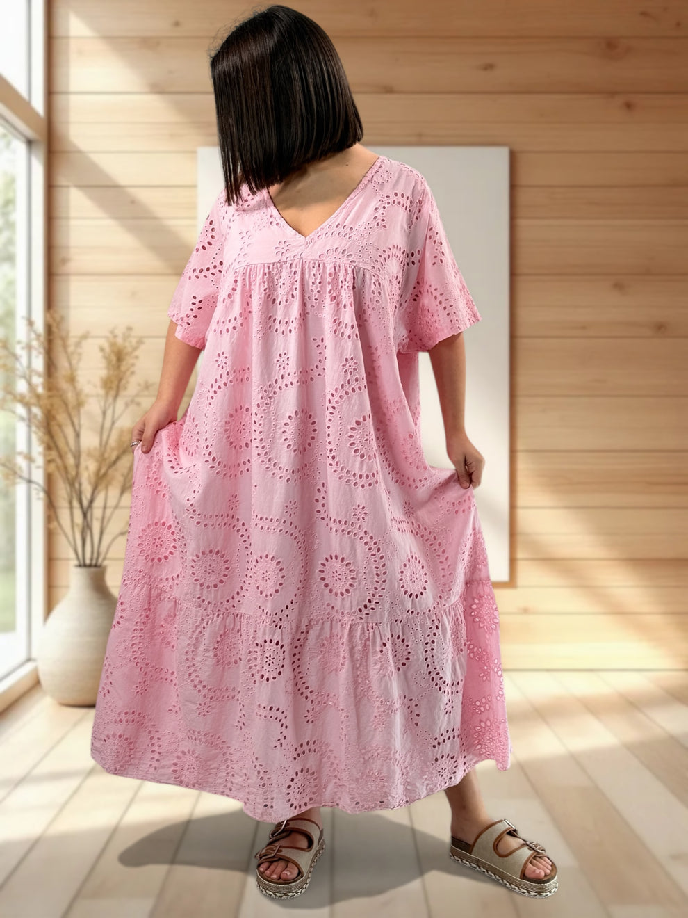 Robe longue rose en broderie anglaise petite et grande taille. SITE ...