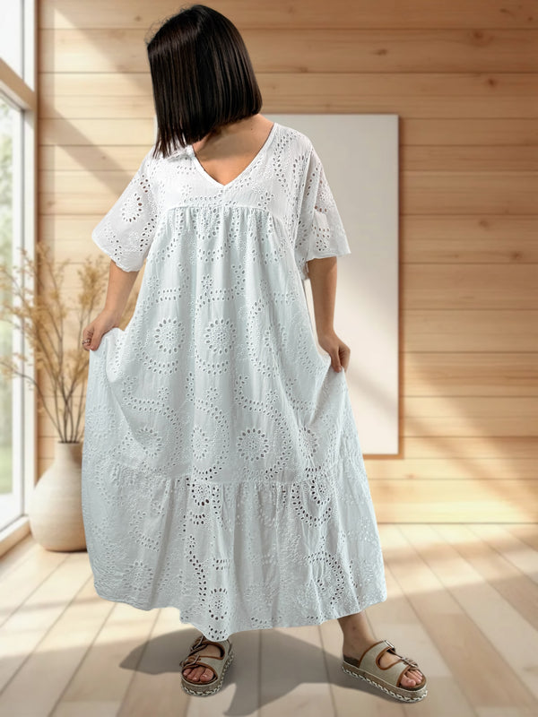 Robe longue blanche en broderie anglaise petite et grande taille. SITE ...