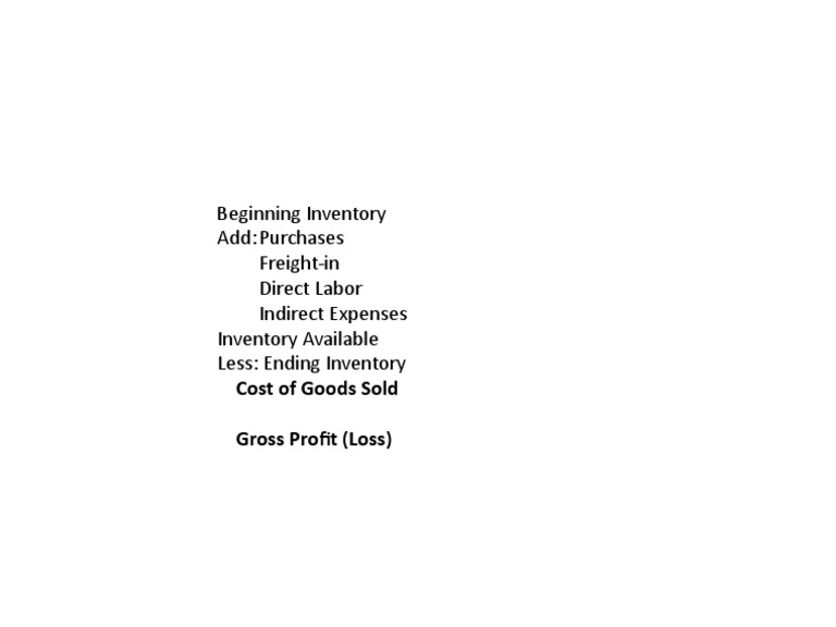 Beginning Inventory Add:Purchases Freight-In Direct Labor Indirect ...