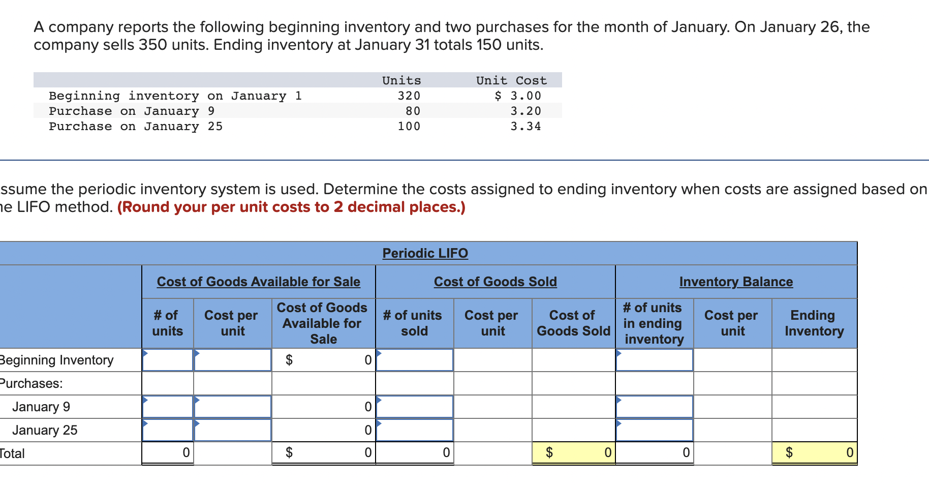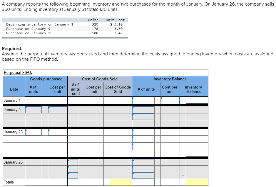 Solved Start by entering the beginning inventory balances. | Chegg.com