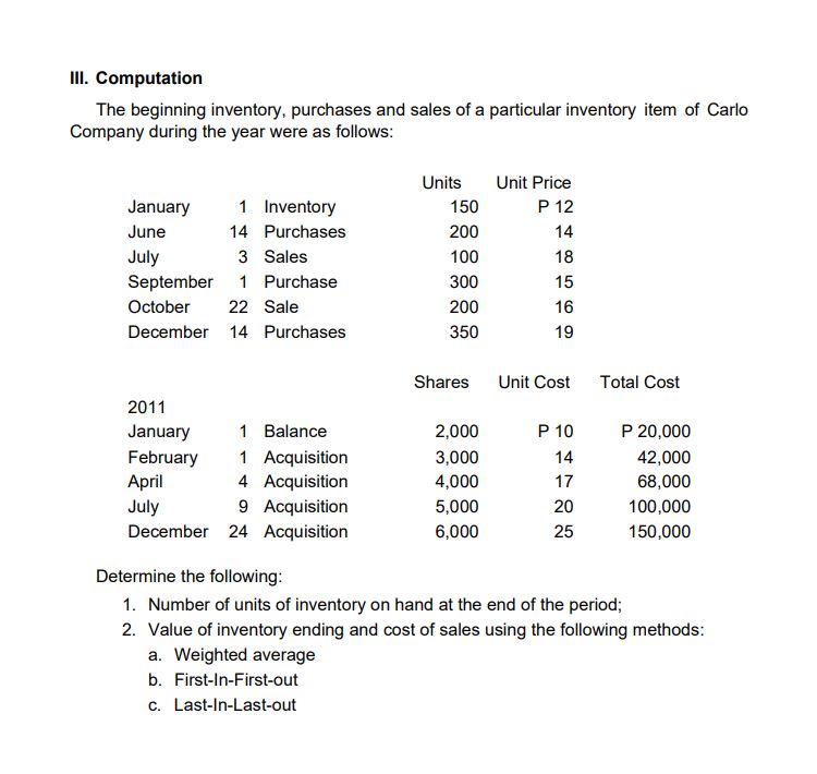 Solved III. ComputationThe beginning inventory, purchases | Chegg.com