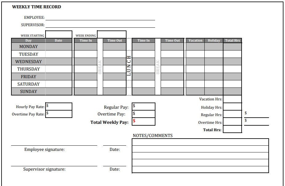 Printable Individual Time Sheet - Etsy