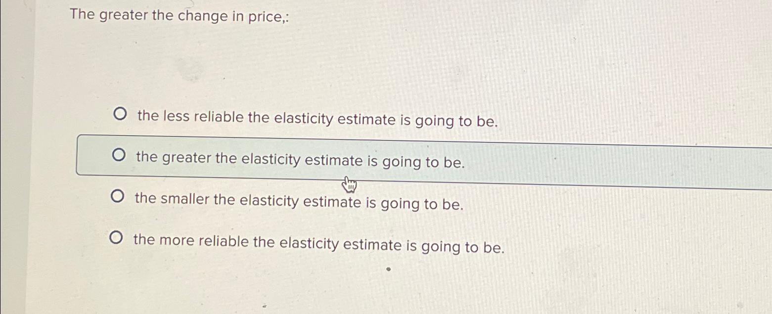 Solved The greater the change in price,:the less reliable | Chegg.com