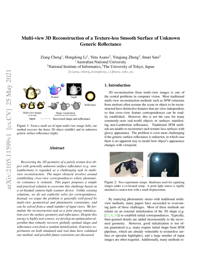 Figure 2 from Multi-view 3D Reconstruction of a Texture-less Smooth ...