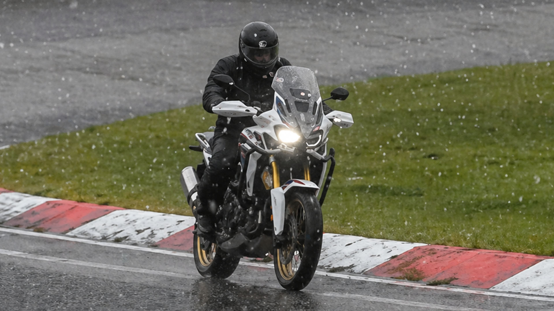 Riding in rain requires smooth control and full focus at all times