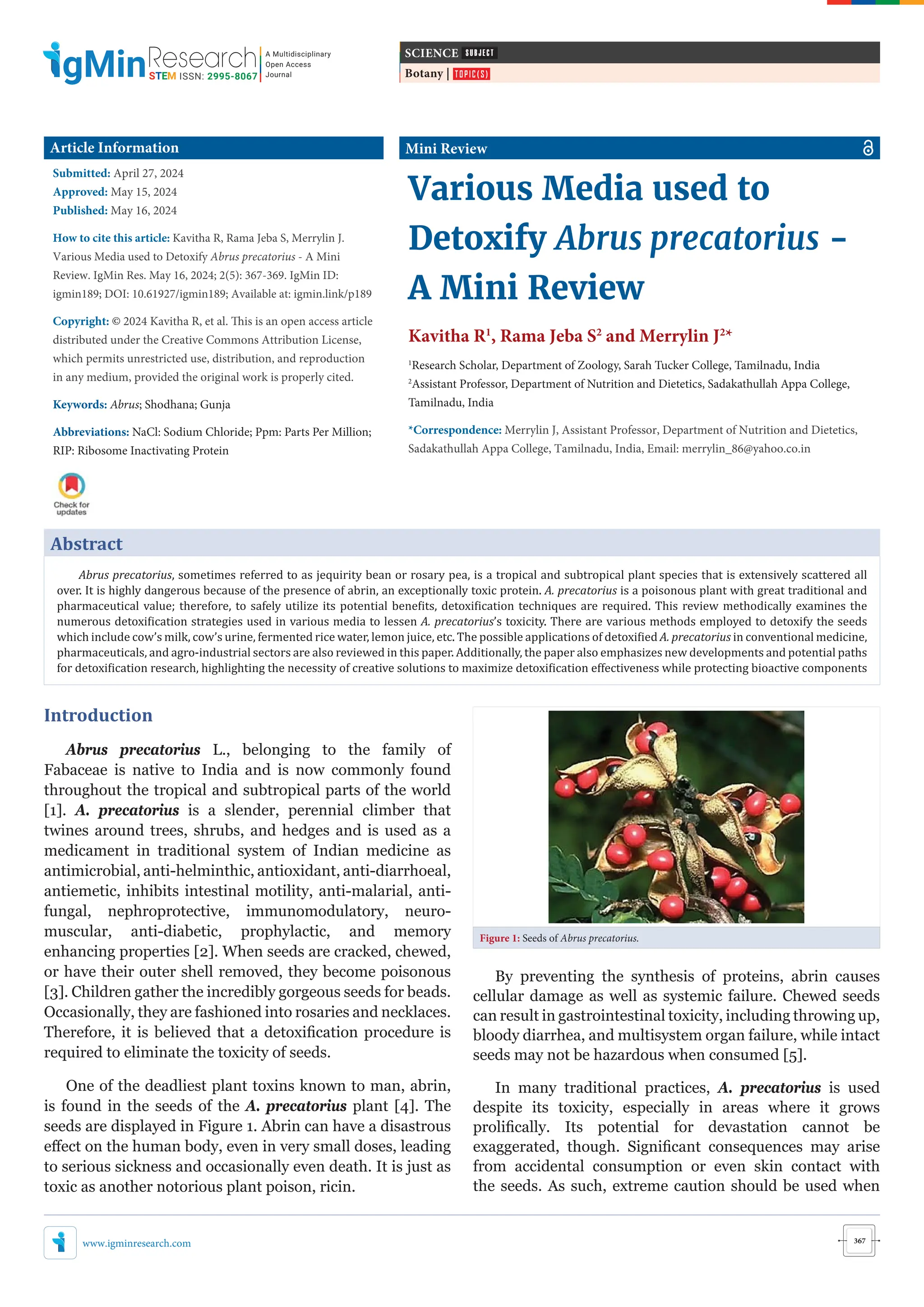 Abrus precatorius Unveiled: Techniques to Mitigate Toxicity | PDF