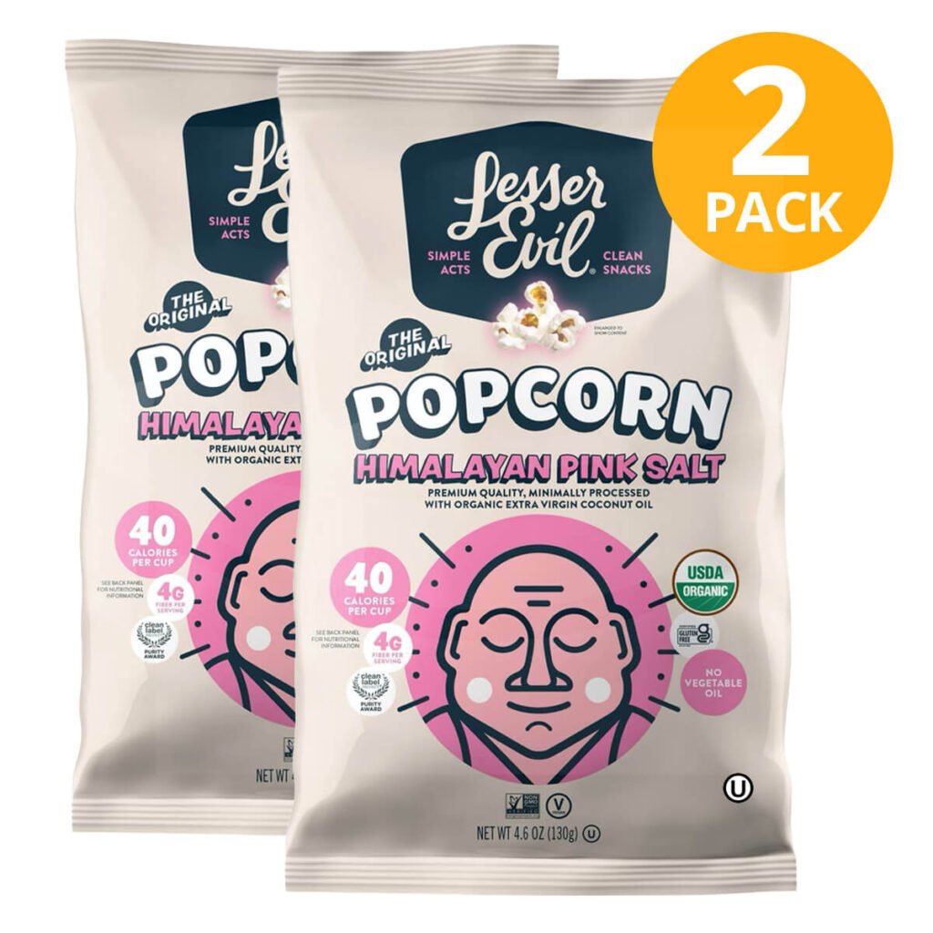 Lesser Evil Organic Popcorn, Himalayan Pink Salt, 4.6 OZ (Pack de 2 ...