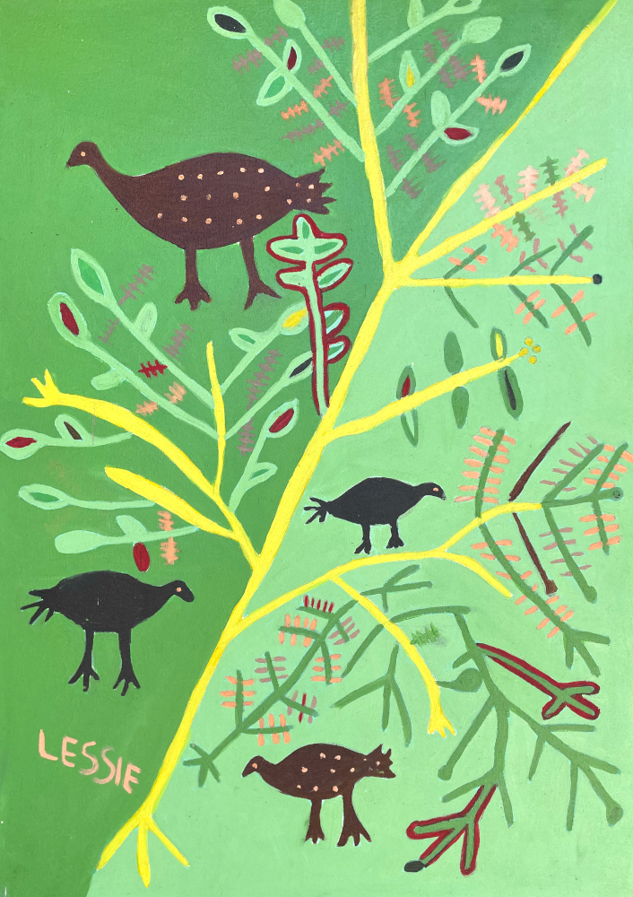 SANDGROUSE AND MORETLWA BUSH, 2024 (OIL ON CANVAS) - Kuru Art Project