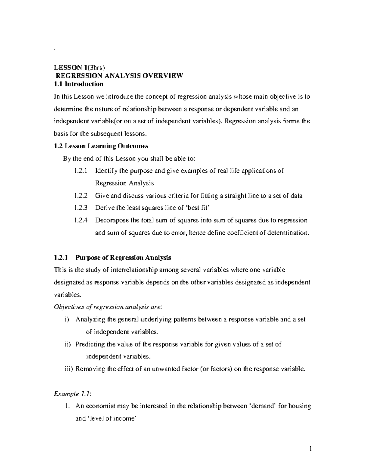 SST307 - Lesson 1: Overview of Regression Analysis Concepts - Studocu