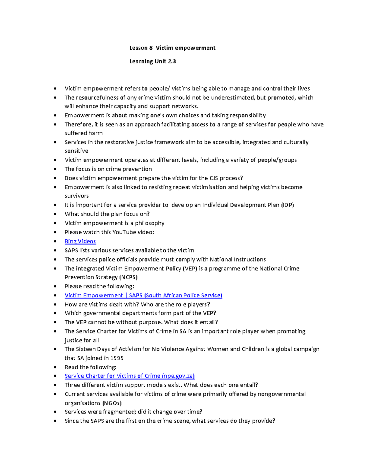 Lesson 8: Victim Empowerment in CMY1502 - Understanding Support ...