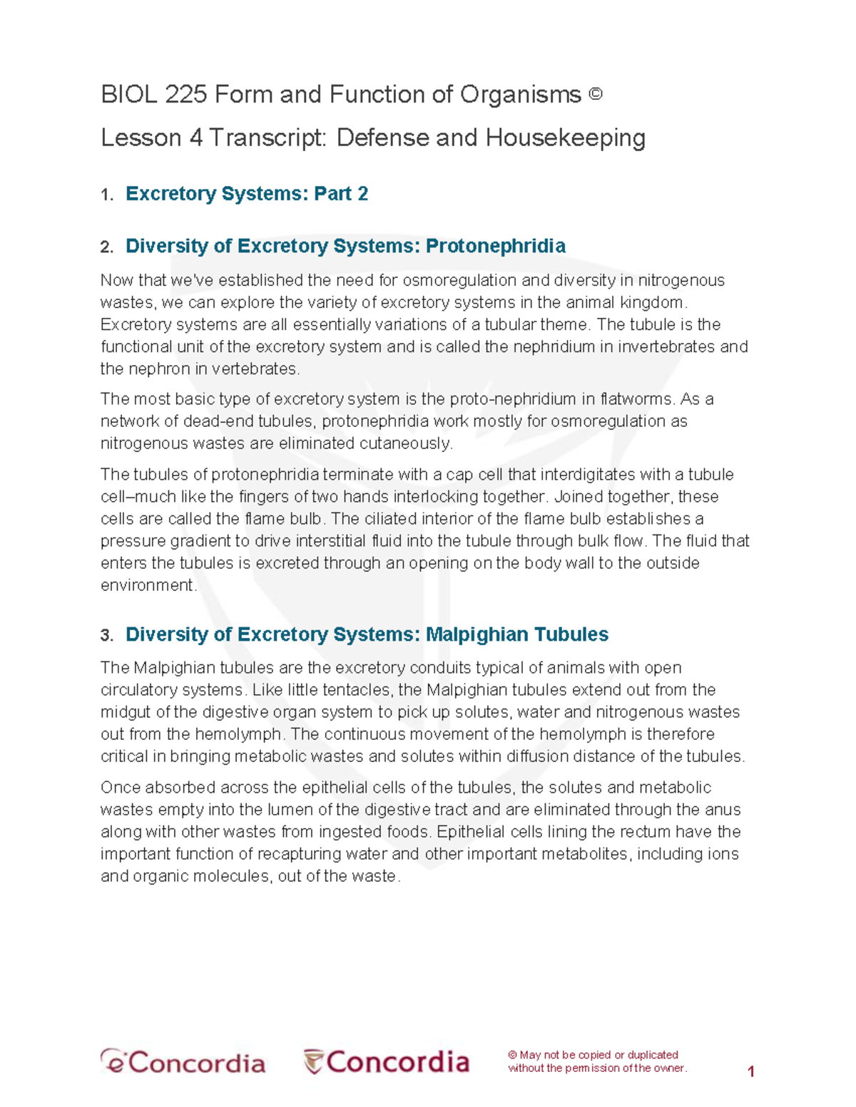 BIOL 225 Lesson 4: Excretory Systems Overview - Studocu