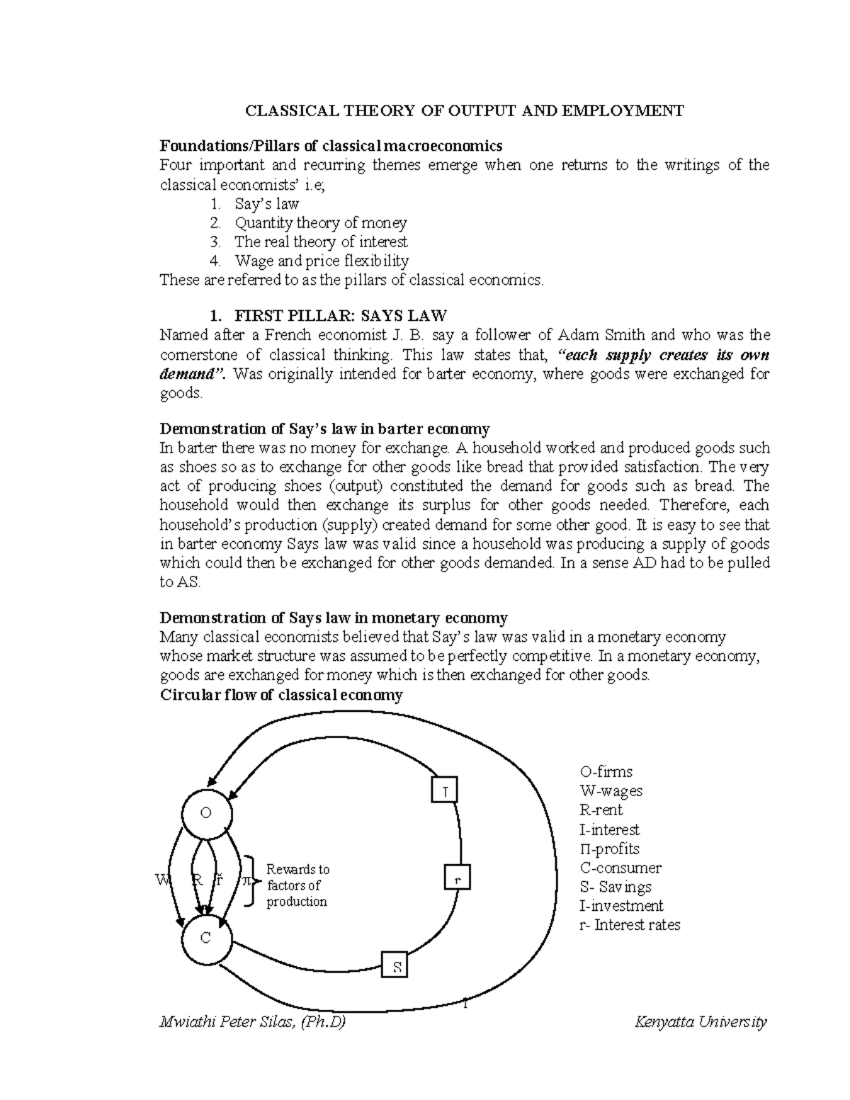 EET 201 Lesson 2: Classical Theory of Output & Employment - Studocu