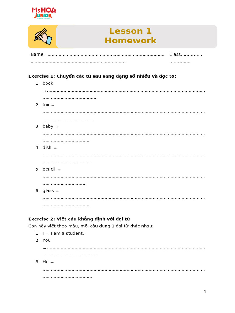 Homework-lesson 1 7071788 | Thuy Linh | Live Worksheets