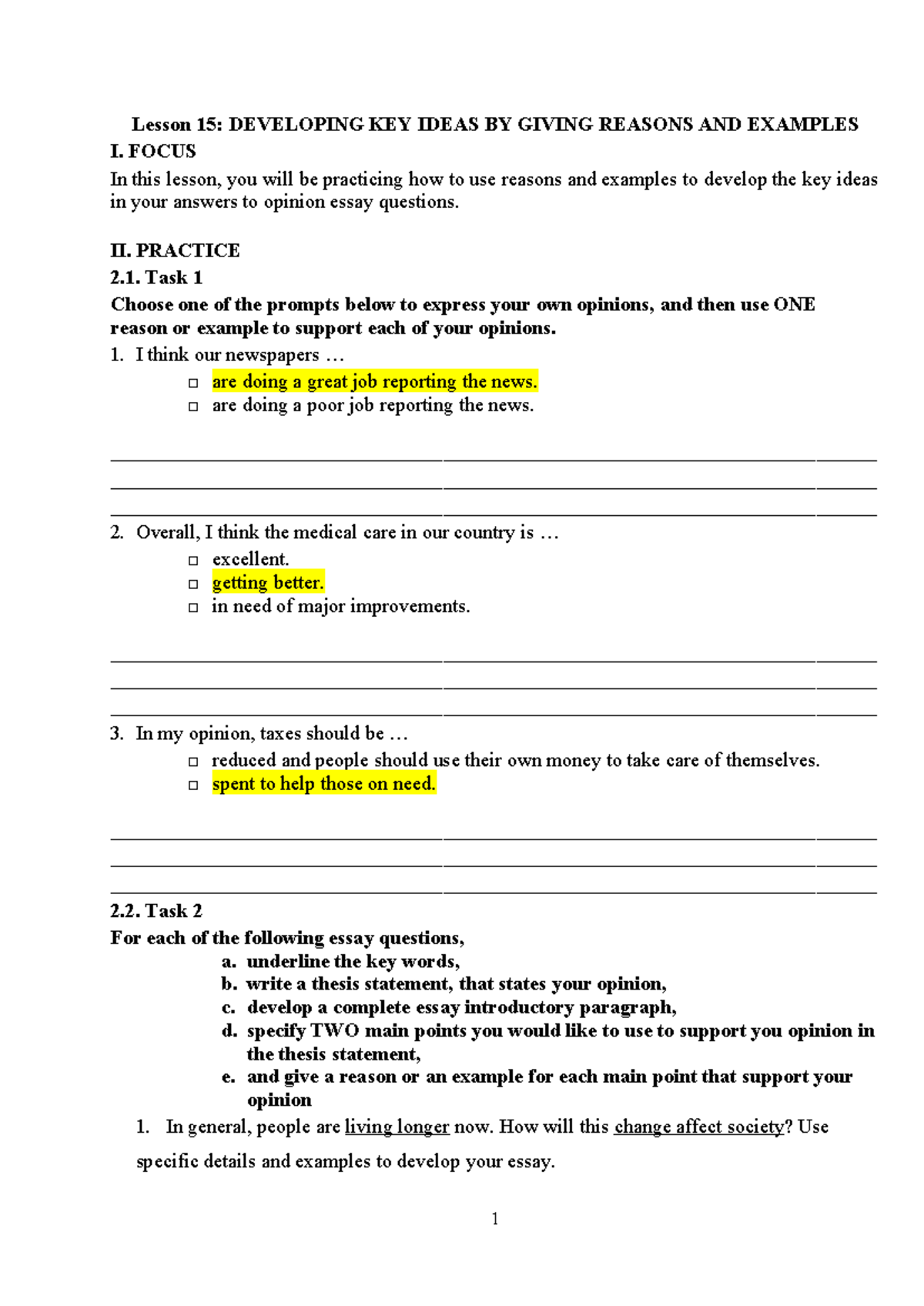 Lesson 15 Homework - Dxxxxx - Lesson 15: DEVELOPING KEY IDEAS BY GIVING ...