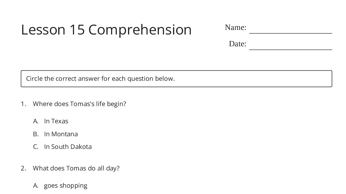 Lesson 15 Comprehension - My Worksheet Maker: Create Your Own Worksheets