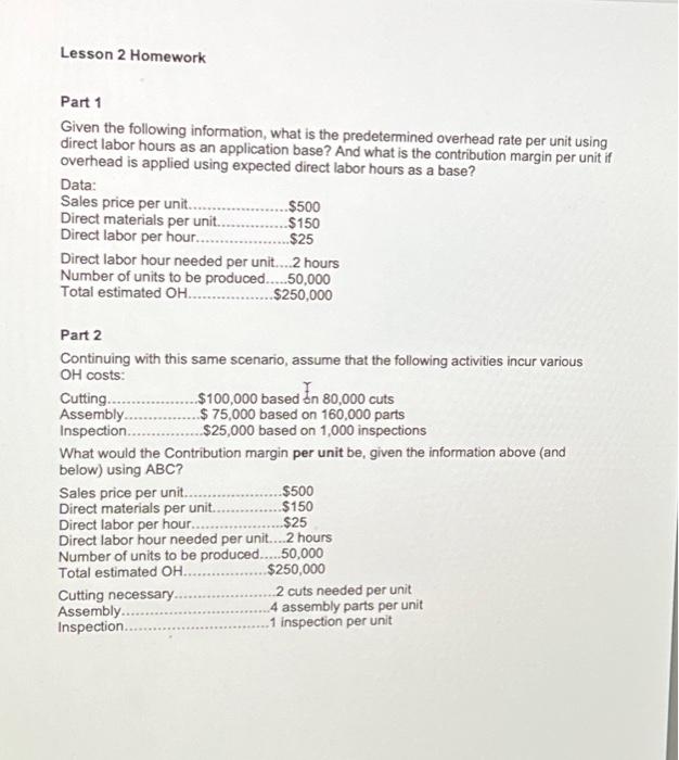 Solved Lesson 2 Homework Part 1 Given the following | Chegg.com