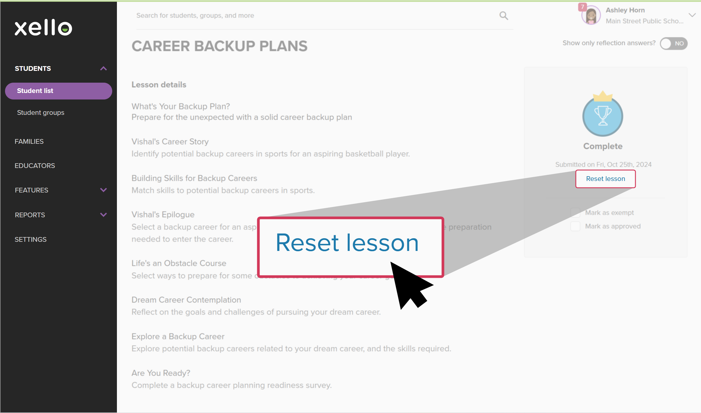 Reset a Lesson for a Student