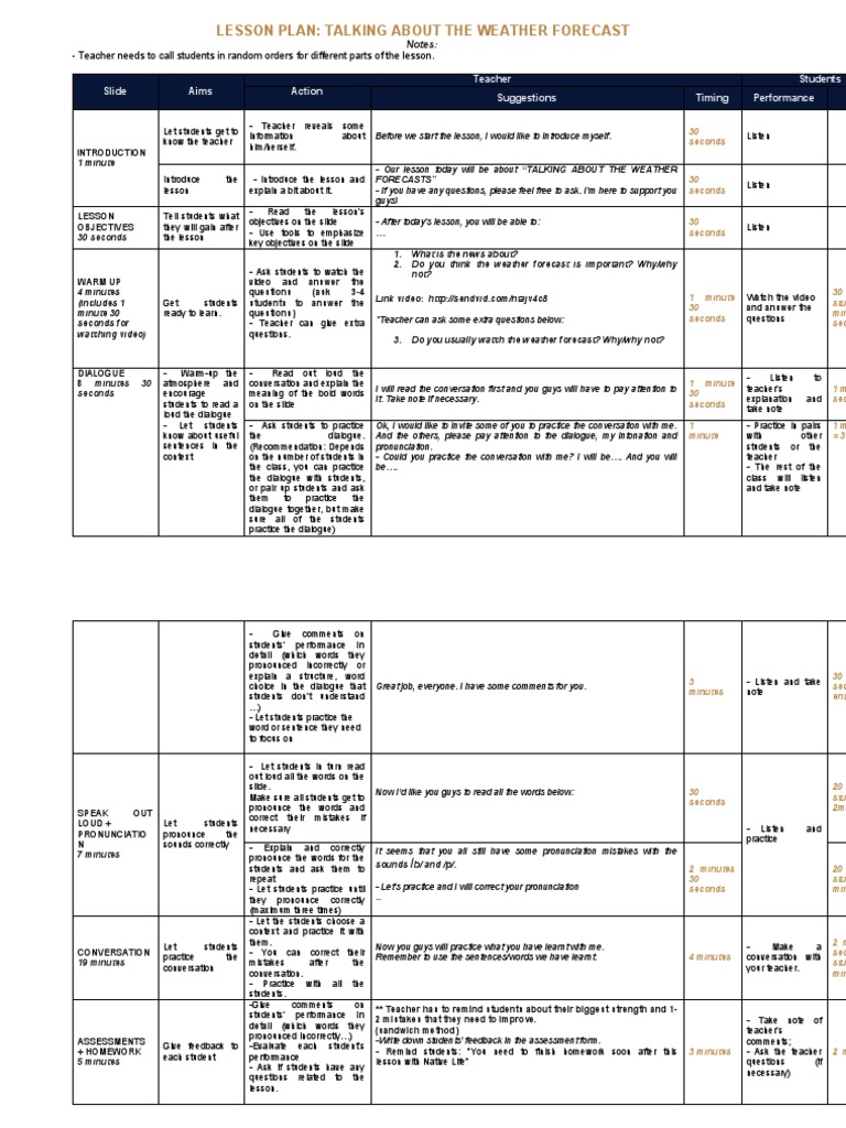 Weather Forecast Lesson Plan | PDF | Teaching | Communication