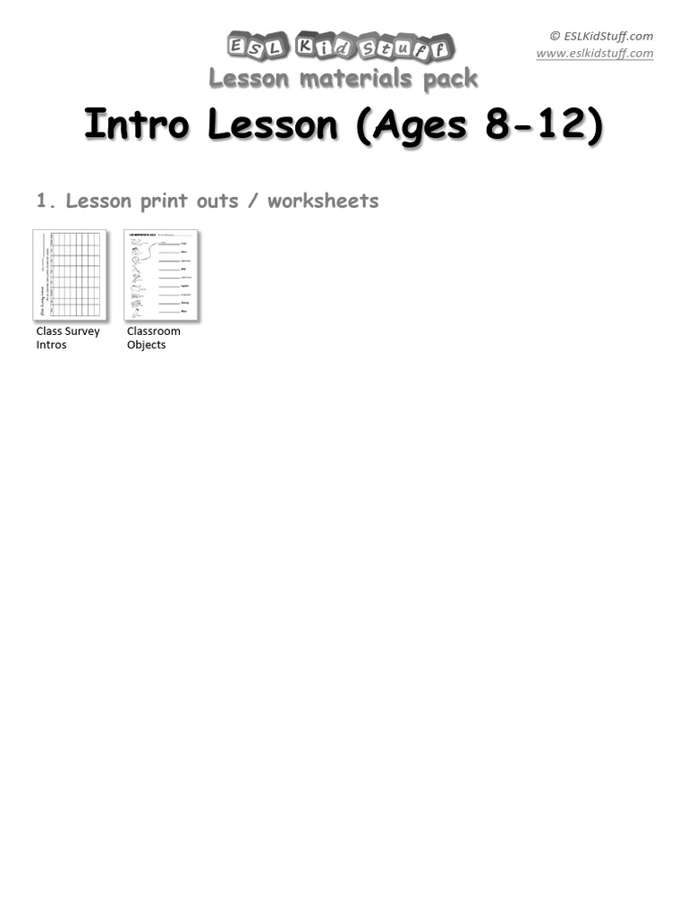 Lesson: Intro Lesson (Ages 8-12) - ESL KidStuff / lesson-intro-lesson ...