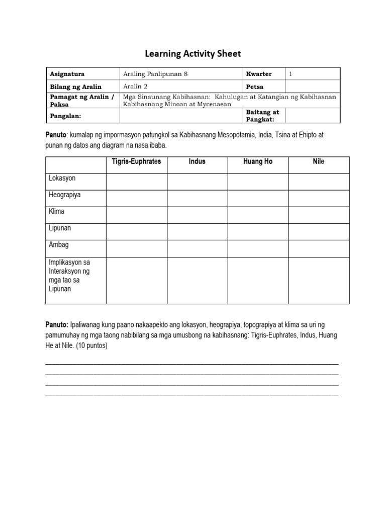 Learning Activity Sheet Template | PDF | Learning | Teachers