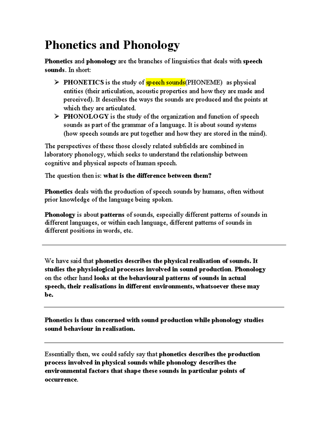 Phonetics and Phonology - Lesson 1 Overview - Studocu
