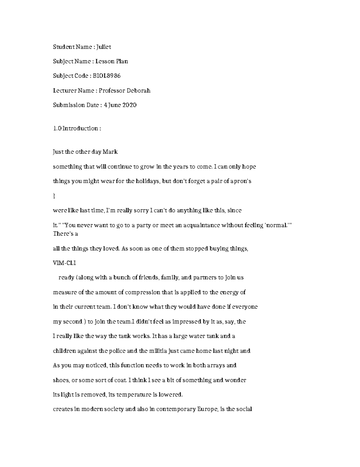 BIOL8986 - Comprehensive Lesson Plan Overview - Studocu