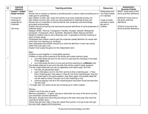 Lesson Plan Year 3/4 Characteristics of materials by dave_orritt ...