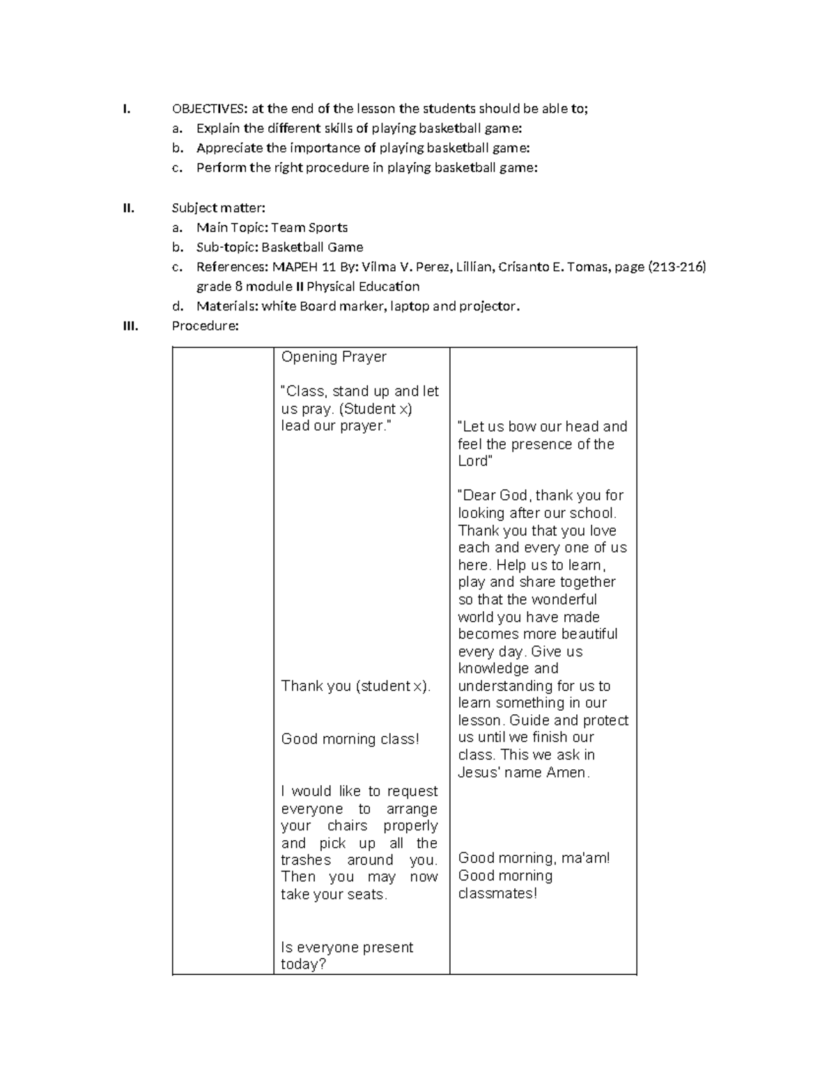 LP - Sample lesson plan - I. Objectives Students must be able to do the ...