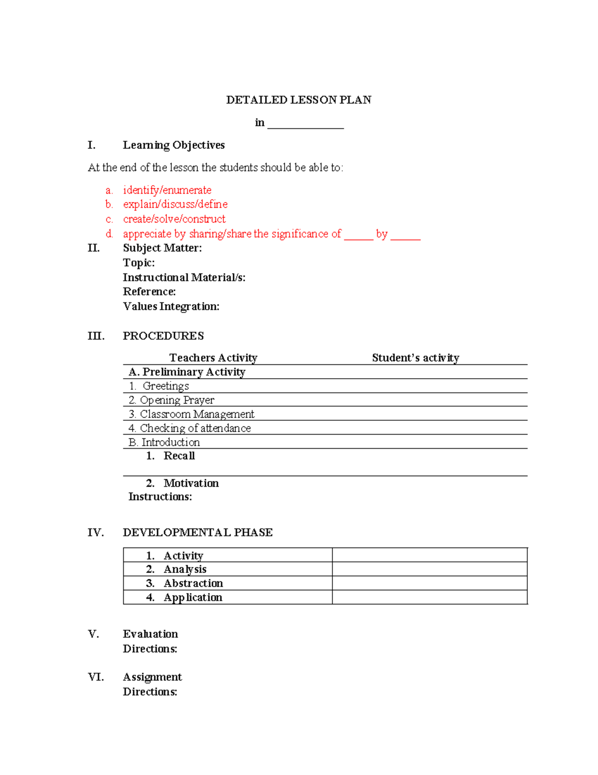 Lesson Plan Examples With Objectives at Charlene Warden blog