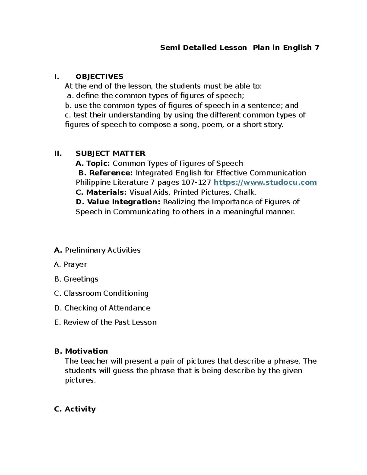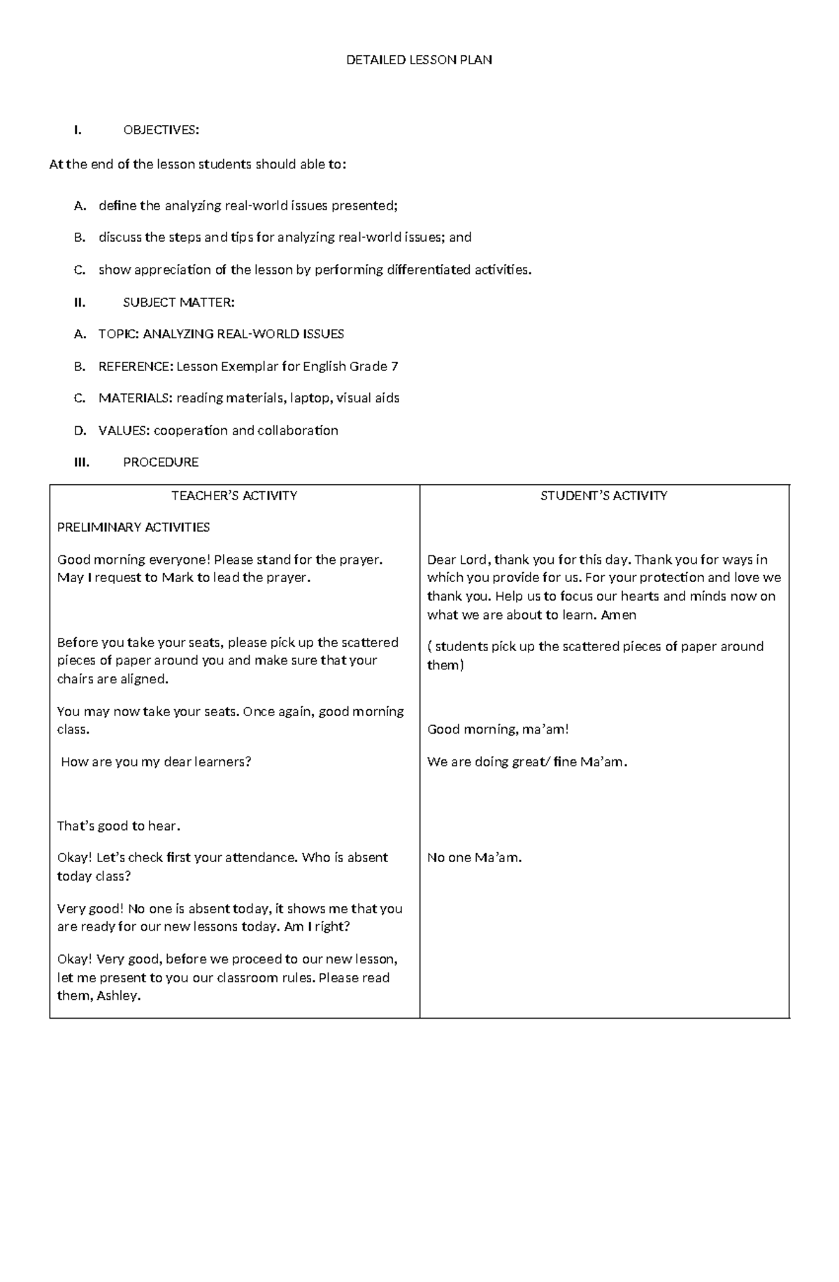 Inbound 7410012682458854489 - DETAILED LESSON PLAN I. OBJECTIVES: At ...
