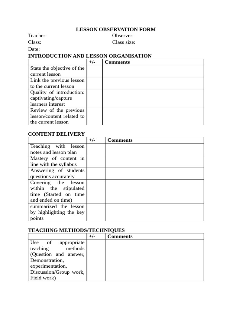 FREE 7+ Lesson Observation Form Samples, PDF, MS Word, Google Docs