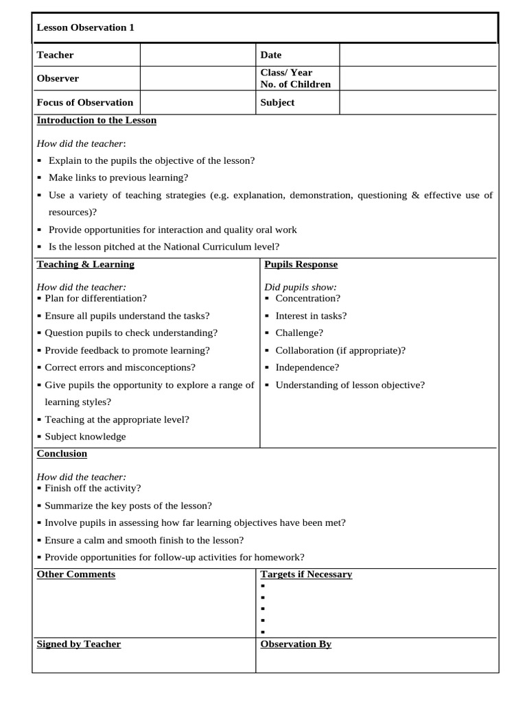 Editable Lesson Observation Template | PDF