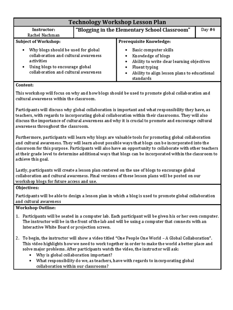 Technology Workshop Lesson Plan: "Blogging in The Elementary School ...