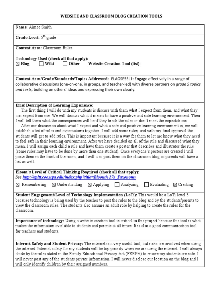 Blogging Lesson Plan for 5th Grade | PDF | Lesson Plan | Classroom