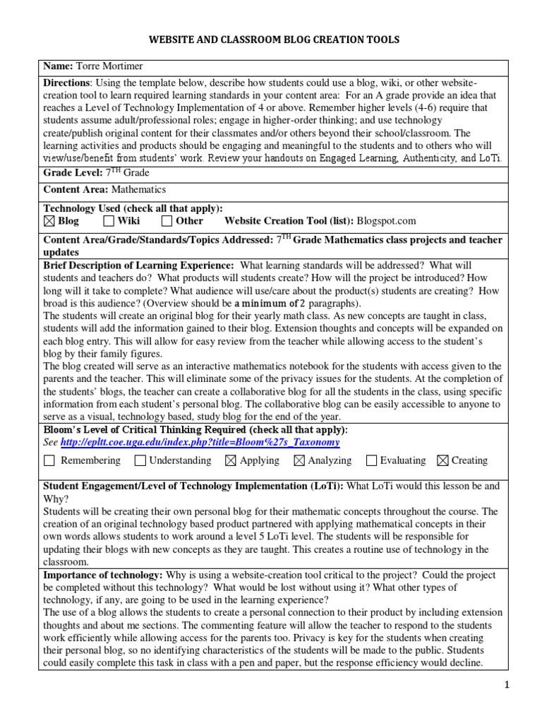 Blog Lesson Plan Idea Templete | PDF | Teachers | Blog