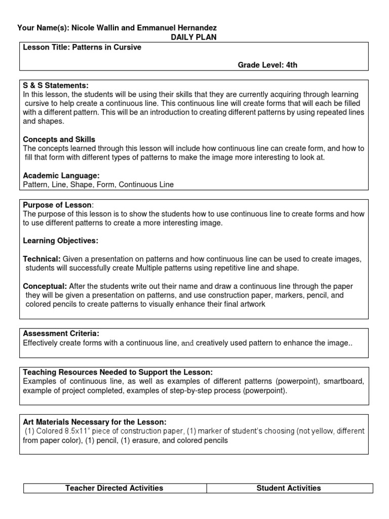 Patterns in Cursive Lesson Plan - Wallin Hernandez | PDF | Lesson Plan ...