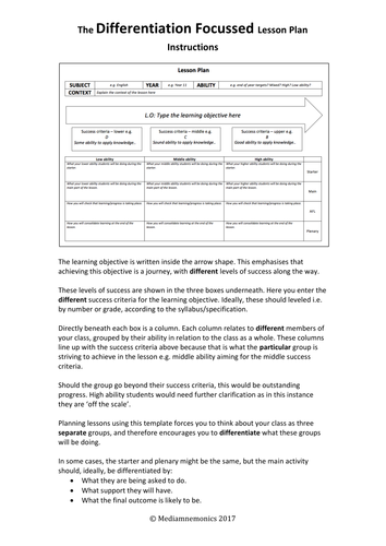 The Differentiation Focussed Lesson Plan Template | Teaching Resources