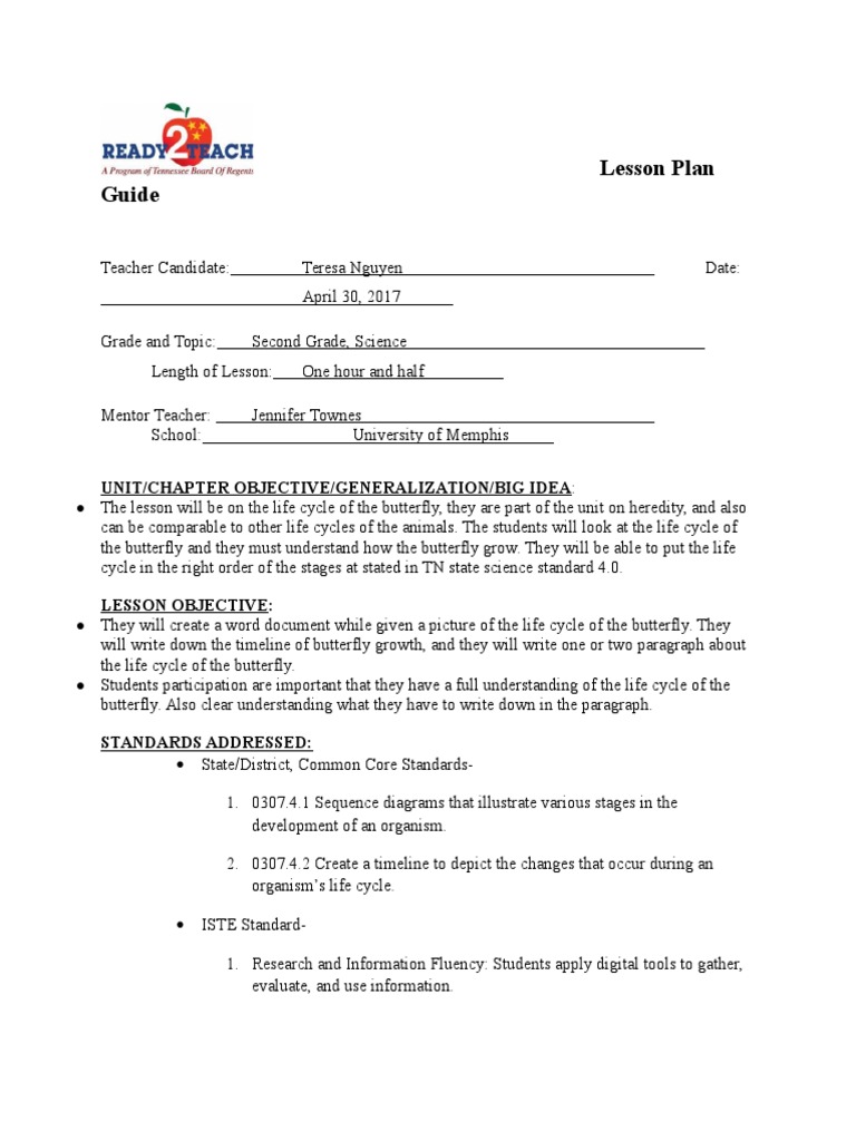 Lesson Plan Examples With Standards at Jennifer Bos blog