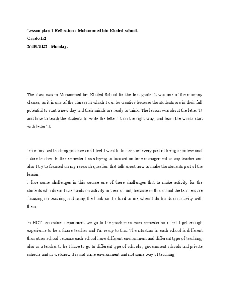 lesson plan reflection 1 | PDF | Classroom | Cognition