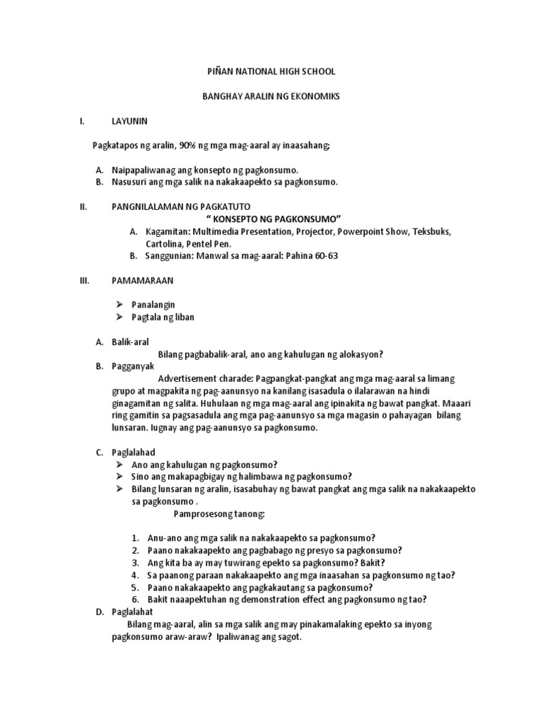 ,,6 - None - Lesson Plan format for Lagumang Pagsusulit/SummativeTest ...