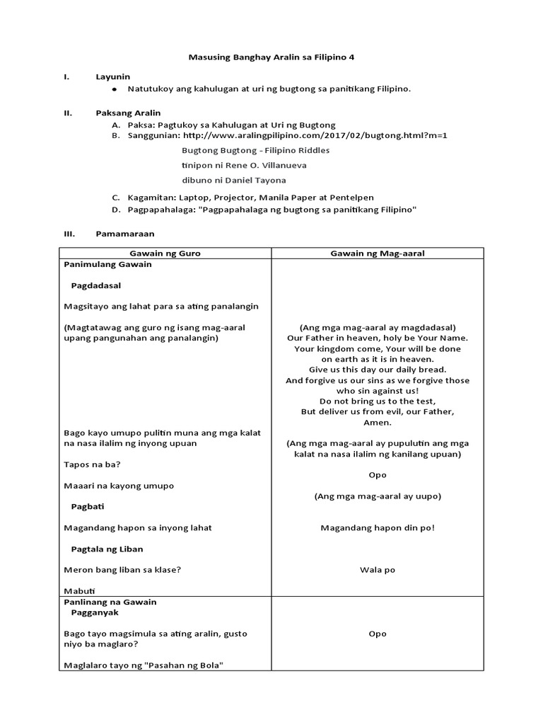 GRADE 4 FILIPINO LESSON PLAN | DOC
