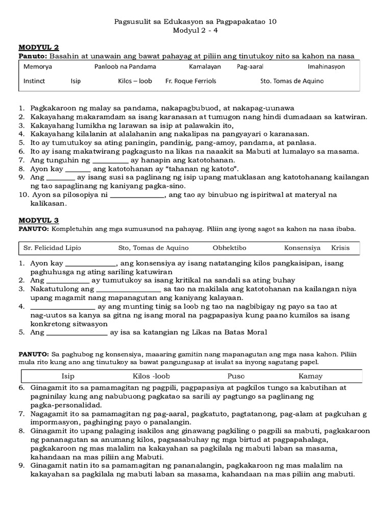 Pagsusulit Sa Esp 10 M1-M2 | PDF