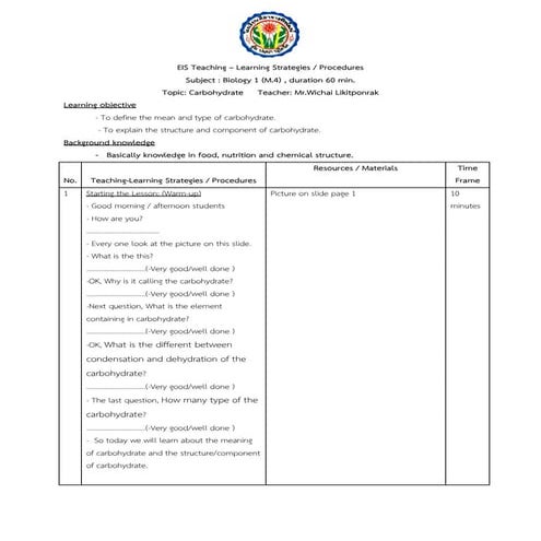 Lesson Plan, Methodology | PDF | Vocabulary | Lesson Plan