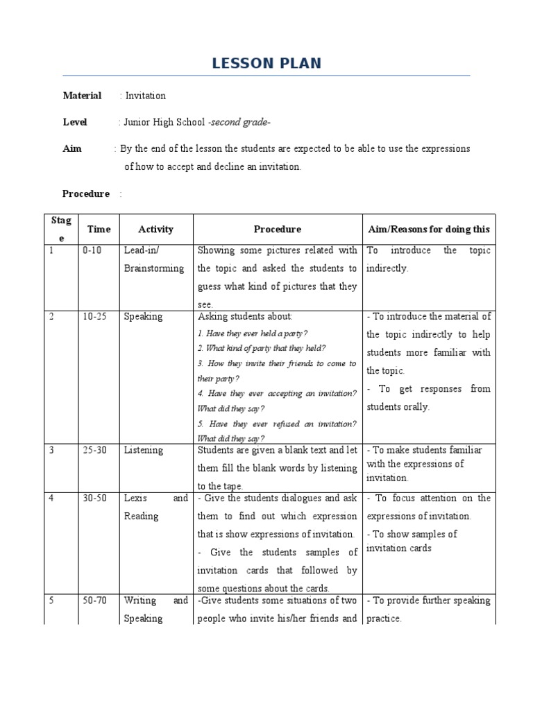 Lesson Plan: Stage / Time Activity Procedure | PDF | Pedagogy ...
